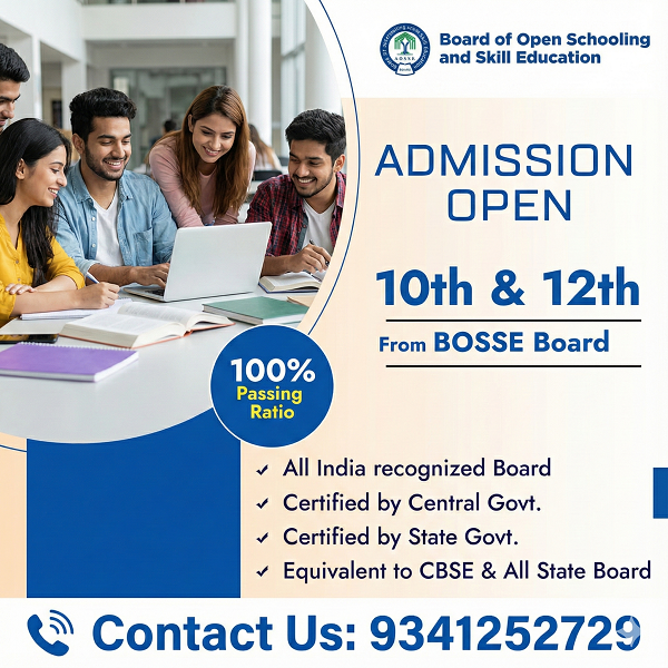 BOSSE (10th/12th) – Last Chance for April 2026 Exams! Last Date for Admission: November 30, 2025: Without late fee December 31, 2025: With ₹2000 late fee Live online classes starting from December! Failed in 10th or 12th? Don’t worry! Here is a golden opportunity to complete your education! Complete your 10th/12th through BOSSE Board — Fully online exams and classes. Why Choose BOSSE? ✔ Government approved ✔ Equivalent to CBSE/State Boards ✔ Valid for higher education & government/private jobs ✔ Easy and flexible learning Don’t miss this opportunity! Join today — secure your future. Website: www.diginetinfosystems.in www.diginetinfosysem.com Call/WhatsApp: +91 9341252729, 9902493197