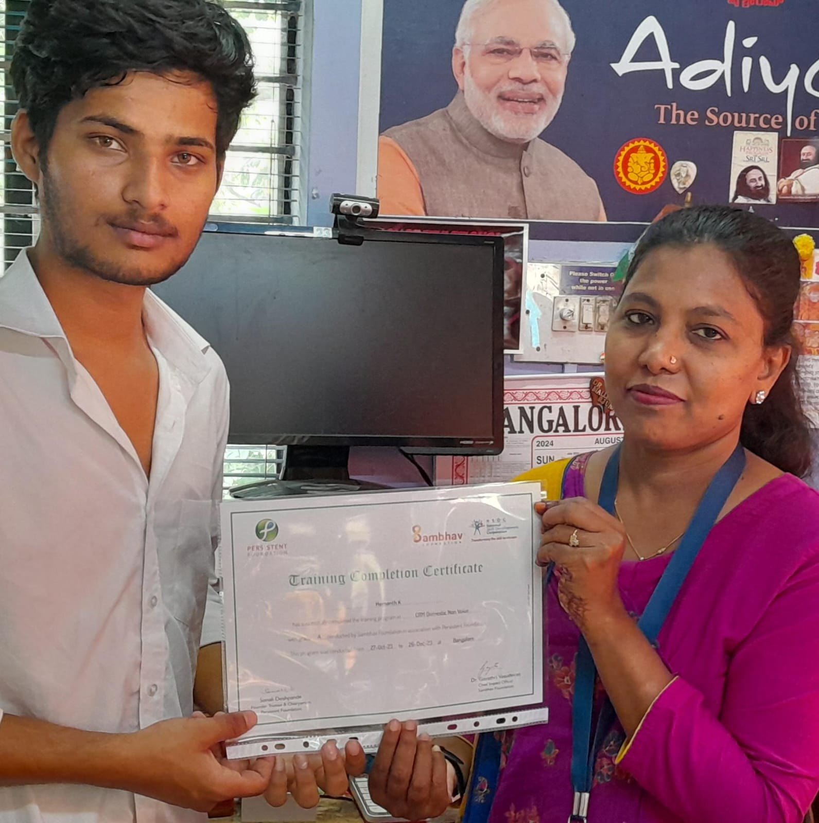 Congratulations to Hemanth R. on successfully completing the CRM Domestic Non-Voice training program, conducted by Sambhav Foundation in association with Persistent Foundation! With a remarkable grade 'A', Hemanth has demonstrated exceptional dedication and hard work over the past two months. We are proud to see our students achieve such excellence and are excited to witness their future accomplishments. We invite new students to join our upcoming training programs and take the next step in their professional journey. Our courses are designed to equip you with the skills needed to excel in today's competitive job market. Don't miss this opportunity to transform your career with us!