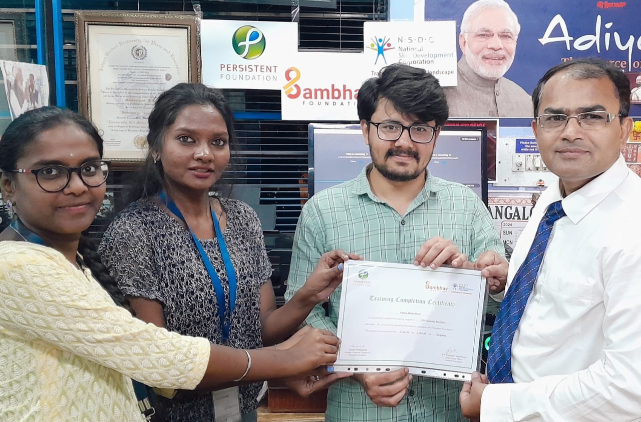 Congratulations to Pathan Abbas Sharif on successfully completing the CRM Domestic Non-Voice training program, conducted by Sambhav Foundation in association with Persistent Foundation and certified through the National Skill Development Corporation (NSDC). With a remarkable grade 'A', Pathan Abbas Sharif has demonstrated exceptional dedication and hard work over the past two months. We are proud to see our students achieve such excellence and are excited to witness their future accomplishments. We invite new students to join our upcoming training programs and take the next step in their professional journey. Our courses are designed to equip you with the skills needed to excel in today's competitive job market. Don't miss this opportunity to transform your career with us!
