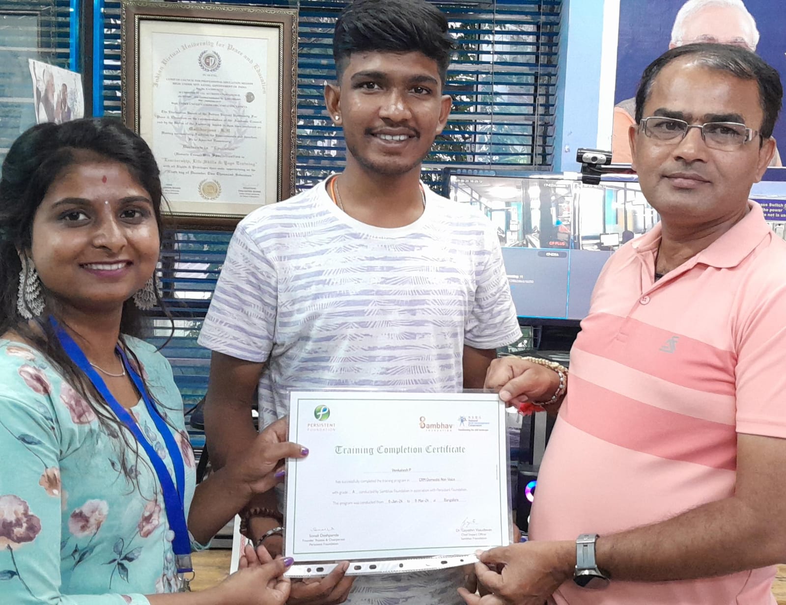 Congratulations to Venkatesh P. on successfully completing the CRM Domestic Non-Voice training program, conducted by Sambhav Foundation in association with Persistent Foundation and NSDC (National Skill Development Corporation)! With a remarkable grade 'A', Venkatesh has demonstrated exceptional dedication and hard work over the past two months. We are proud to see our students achieve such excellence and are excited to witness their future accomplishments. We invite new students to join our upcoming training programs and take the next step in their professional journey. Our courses are designed to equip you with the skills needed to excel in today's competitive job market. Don't miss this opportunity to transform your career with us!