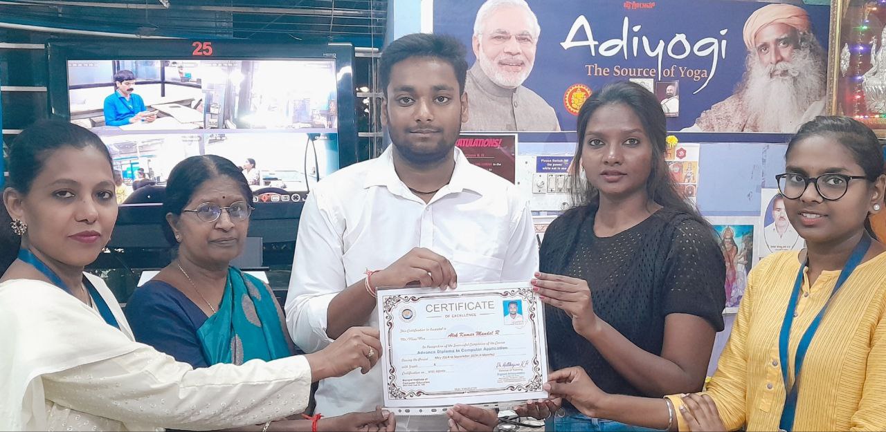 "This Course Completion Certificate is presented with pride to Alok Kumar R, an outstanding student, in recognition of his exceptional achievement in completing the 'Advanced Diploma in Computer Application' course at Diginet Infosystems. Throughout the four-month duration, Alok Kumar exhibited remarkable dedication and enthusiasm under the tutelage of the esteemed faculty, Vaishnavi Mam, and with guidance from the distinguished Centre Manager, Dr. Mallikarjuna K.H Alok Kumar exemplary work ethic and sincerity have been evident throughout his journey. As he sets out to conquer new horizons, we extend our heartfelt wishes for his continued success and prosperity in all his future endeavors. Congratulations, Pratish, on this remarkable accomplishment.